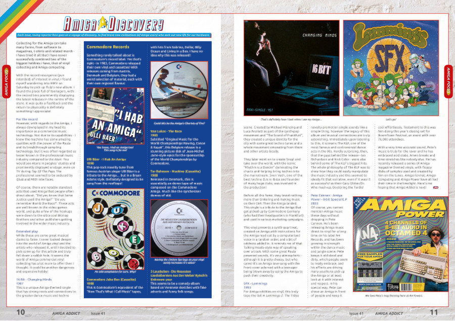 - A drops the needle on Commodore- and Amiga-themed vinyl records and music albums.
