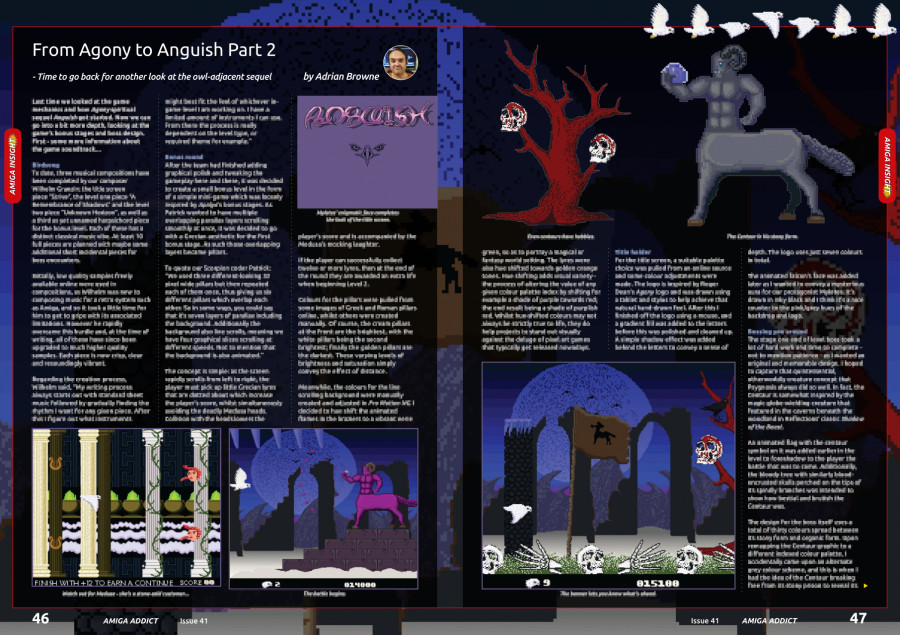 - Adrian Browne returns with more developer diaries, recounting how his team created Anguish, the AGA follow-up to Agony.