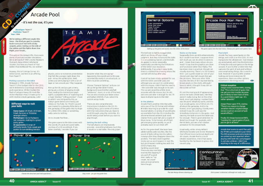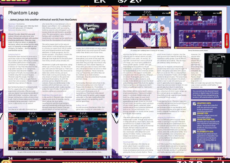 - New game reviews and classic retrospectives, including Phantom Leap, A100, Speedball 2: Brutal Deluxe and Arcade Pool.