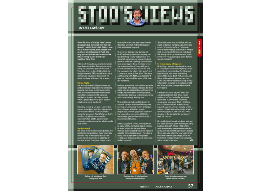 regulars including former-Sensible Software's Stoo Cambridge, Amiga news and User Groups.